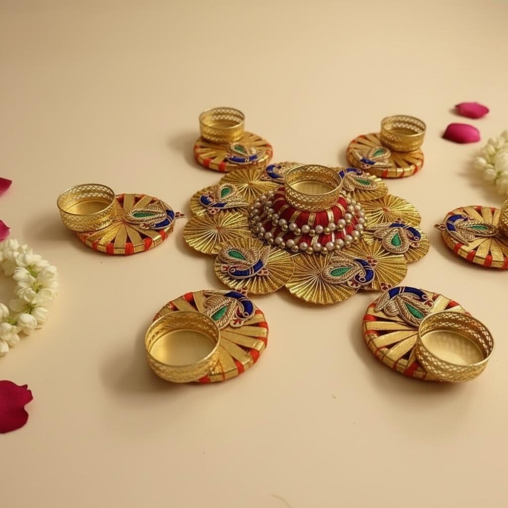 Elevate your festive décor with our luxuriously handcrafted rangoli sets and decorative platters, thoughtfully designed to suit every style — from timeless traditional patterns to modern artistic expressions. Each piece is a celebration of intricate craftsmanship, vibrant detailing, and cultural elegance, perfect for adorning entrances, pooja setups, or serving as statement festive accents. Versatile and premium in finish, these creations bring warmth, auspicious energy, and a refined festive charm to every occasion, making them ideal for both personal use and elegant gifting.