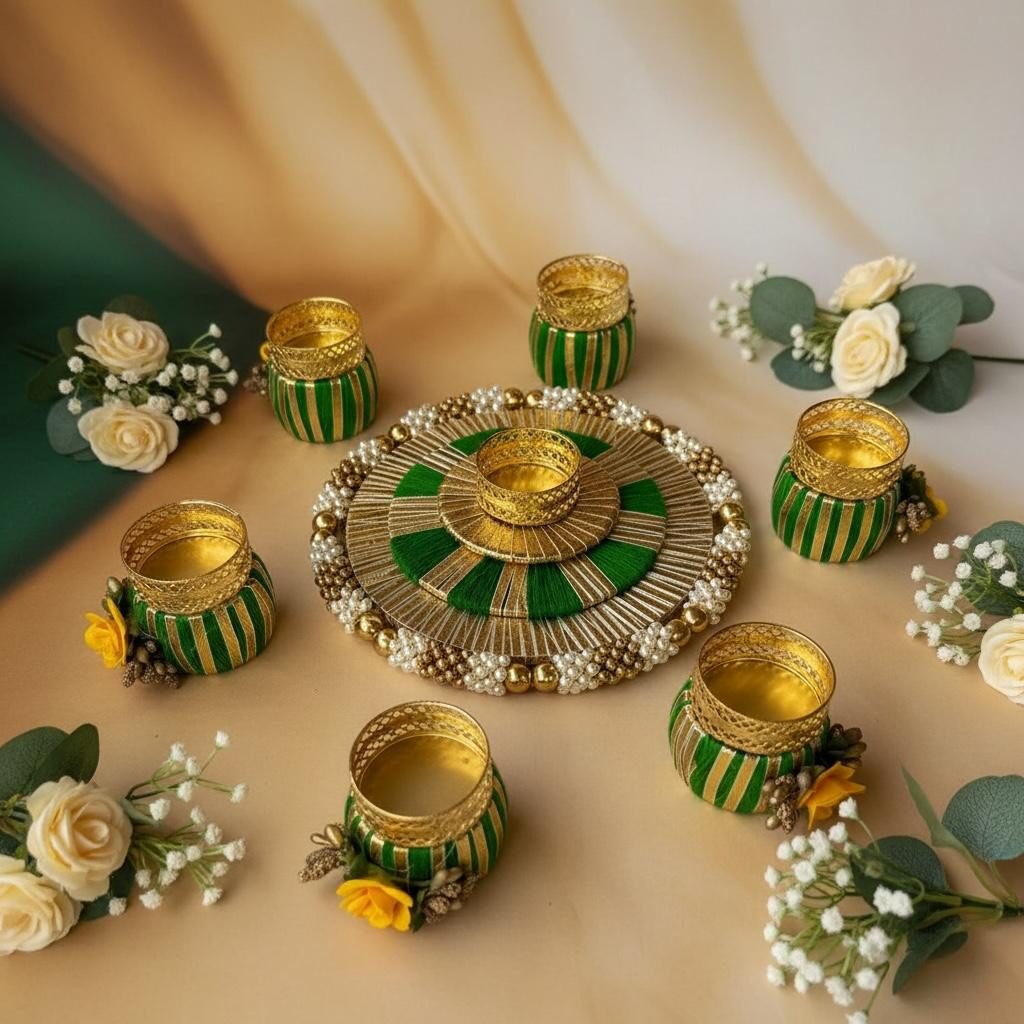 Elevate your festive décor with our luxuriously handcrafted rangoli sets and decorative platters, thoughtfully designed to suit every style — from timeless traditional patterns to modern artistic expressions. Each piece is a celebration of intricate craftsmanship, vibrant detailing, and cultural elegance, perfect for adorning entrances, pooja setups, or serving as statement festive accents. Versatile and premium in finish, these creations bring warmth, auspicious energy, and a refined festive charm to every occasion, making them ideal for both personal use and elegant gifting.