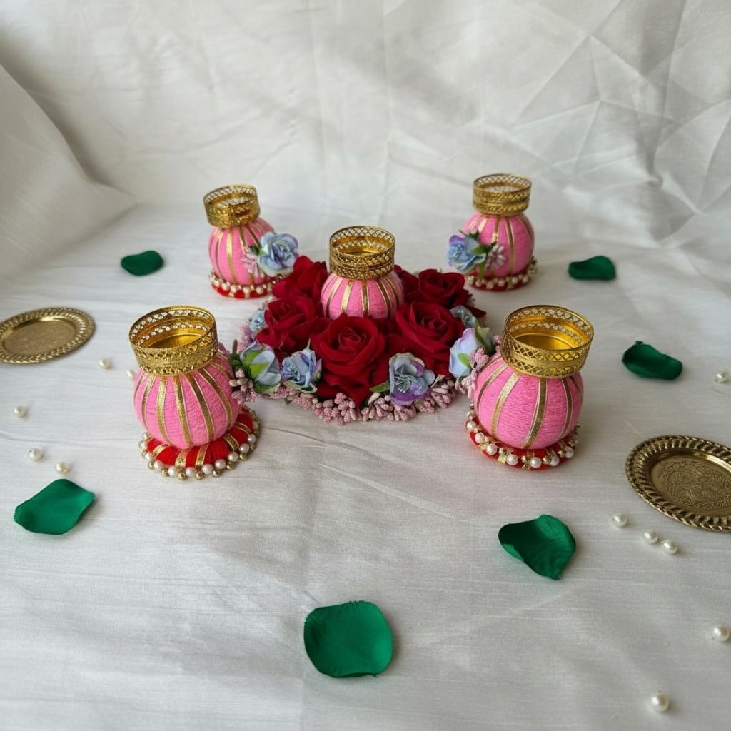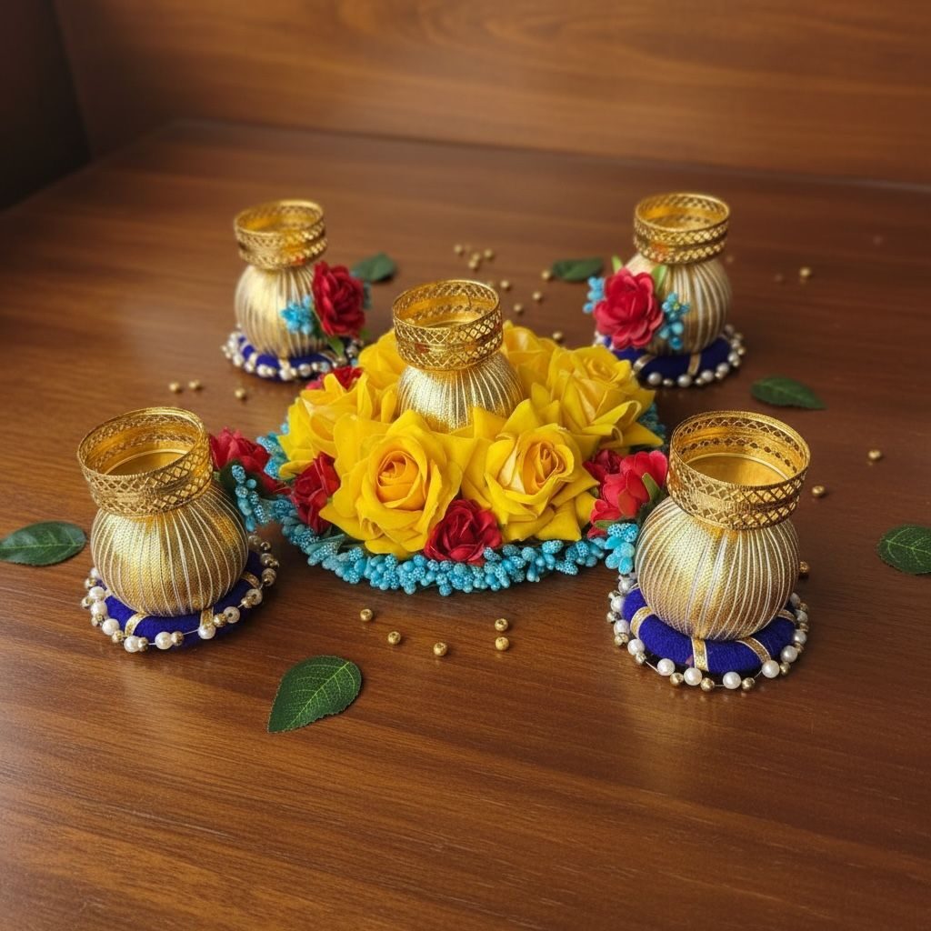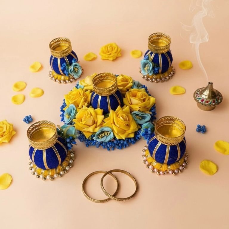 Elevate your festive décor with our luxuriously handcrafted rangoli sets and decorative platters, thoughtfully designed to suit every style — from timeless traditional patterns to modern artistic expressions. Each piece is a celebration of intricate craftsmanship, vibrant detailing, and cultural elegance, perfect for adorning entrances, pooja setups, or serving as statement festive accents. Versatile and premium in finish, these creations bring warmth, auspicious energy, and a refined festive charm to every occasion, making them ideal for both personal use and elegant gifting.