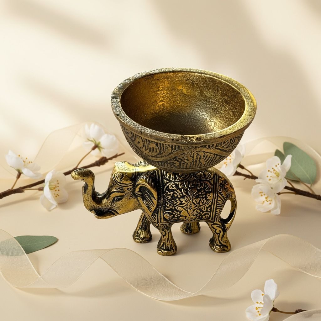 Brass-finish elephant figurine symbolizing prosperity and good luck