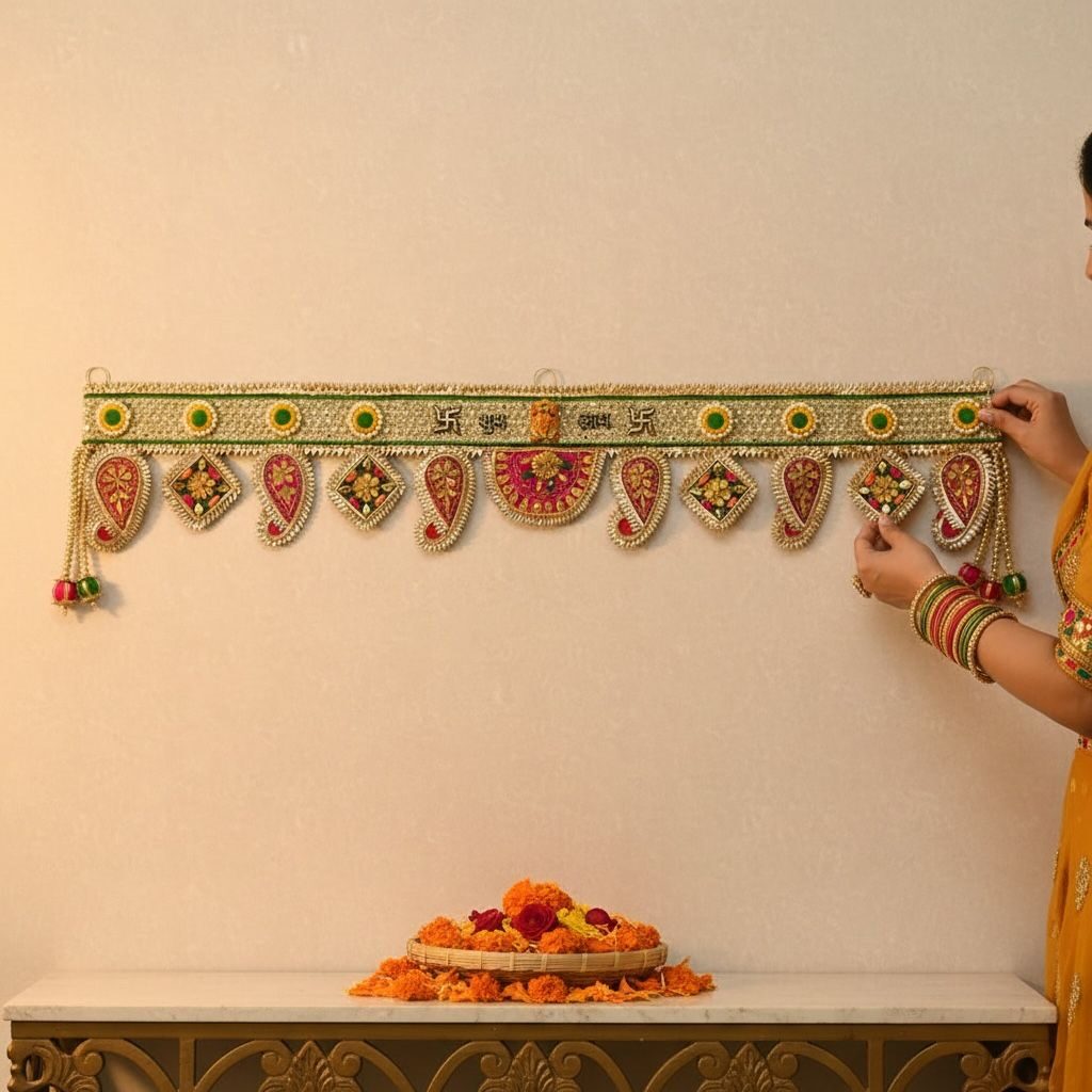 Suitable for main doors, pooja rooms, windows, weddings, and festival decorations, these traditional door hangings are crafted with quality materials and detailed artistry. Our decorative torans complement modern and ethnic home décor styles, making them perfect for Diwali décor, housewarming decoration, wedding decoration, and everyday spiritual ambience. A beautiful choice for gifting and festive home styling.